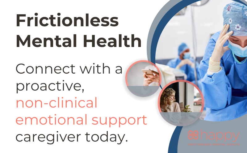 Happy is a proactive, non-clinical mental health service collaborating with major health systems, health plans and the Department of Defense to pioneer FRICTIONLESS MENTAL HEALTH — an approach to mental health support that removes every major barrier preventing many people from accessing basic mental health support.