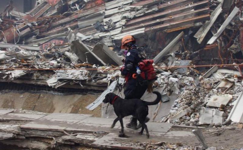 We arrived in New Jersey and got our first view of the smoke rising from lower Manhattan just after sunrise on 9-12. We set up our base of operations at the Javits Center and then proceeded to Ground Zero. As we slowly progressed southward, we encountered more debris, dust, as well as damaged and unattended pieces of fire apparatus which gave silent testimony to the number of missing firefighters. At one stage, we had to exit and free hose couplings that had become entangled in our rear wheels. To that point, the largest collapse incident was the Murrah building bombing in Oklahoma City. So, the environment we encountered in lower Manhattan was unlike any experienced prior by the system. Our respiratory protection was inadequate initially. We were assigned to the Liberty Street section and set up a forward base of operation at a Chase bank branch on South End Ave just opposite the then World Financial Center. For nearly 10 days, we conducted various missions 24/7 in the debris field as well as the evacuated adjacent buildings. We were on site when the last survivor was extracted. The hope that more would be found was all but extinguished over the next 48 to 72 hours. However, we continued to work in coordination with the FDNY locating remains and clearing the surrounding structures leaving no space that could contain victims uninspected.
