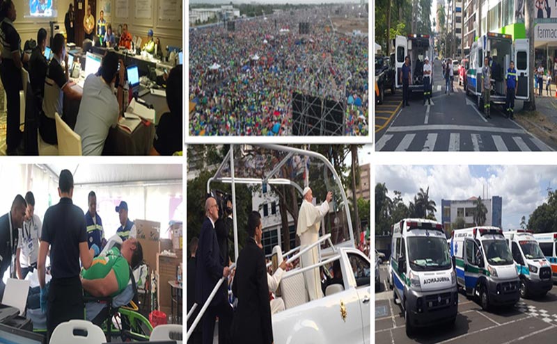 Our last big medical deployment was in 2018 with the Pope in Panama, we dispatch on field more than 100 ambulances, 400 first aid stations, 4 helicopters, tactical medical teams covering the Pope, Biological and Chemical medical respond team and 1000 first aid volunteers. We must include all the rescues agencies resources in order to be prepared for any mass casualty event.