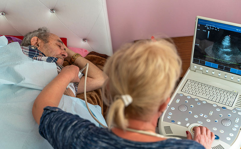 In cases of cardiac arrest, POCUS can be used to detect organized cardiac motion that may not be visible during a simple pulse check in a severely hypotensive patient. Ultrasound can also inform the team when continued resuscitation efforts may be futile, such as when cardiac standstill is observed after prolonged efforts.3