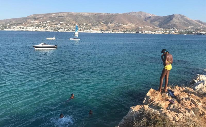 Narrow shoulders, blind curves—and, um, driving off a cliff into the sea—got the better of me the first week. I quickly diagnosed my own anxiety: palpitations, shortness of breath, and hand sweating. How do the locals dead stop on a vertical incline and shift into first gear without drifting backwards or stalling? Unfortunately, avoiding hills in Greece is nearly impossible. The kids became creative and offered a myriad of suggestions of “Things to Do Without Driving!” It sounded like defeat.