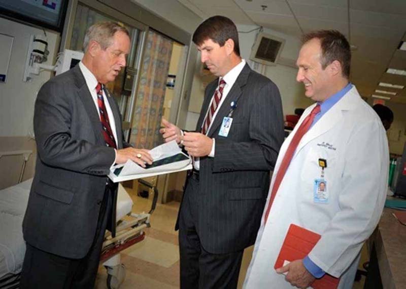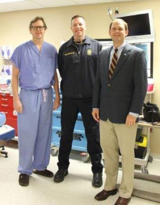 Dr. Nathan McIntosh, Rep. Gregg Harper (R-MS), and Dwayne Blaylock at River Oaks Hospital in Flowood, MS