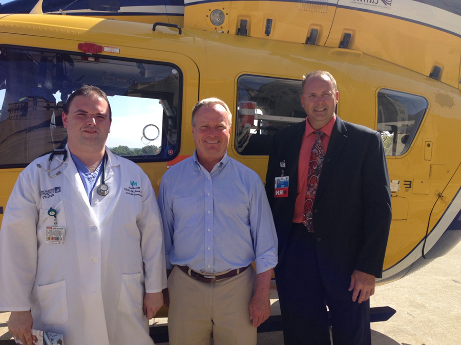 Dr. Michael Smith with Congressman David Joyce (R-OH) on the helideck at MetroHealth Medical Center