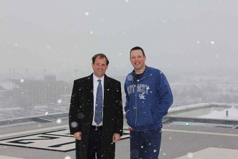 Dr. Ryan Stanton with Congressman Andy Barr (R-KY) on the roof of the University of Kentucky Good Samaritan Hospital