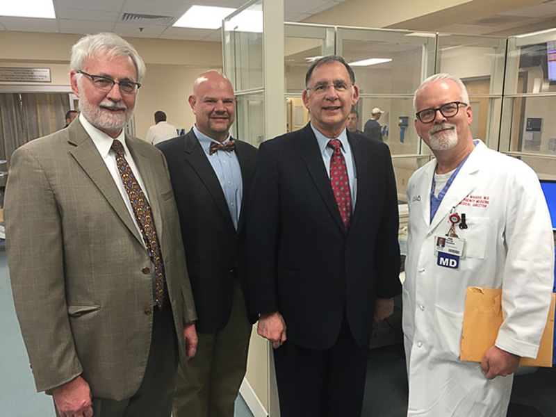 Dr. Gene Shelby, Dr. Russell Tarr, Senator John Boozman (R-AR), and Dr. Randy Maddox at the University of Arkansas for Medical Sciences ED in Little Rock
