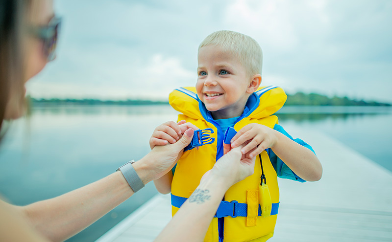 Always use life jackets when in, on, or near natural bodies of water, such as lakes and rivers. Also, make sure the life jackets fit properly and are approved by the U.S. Coast Guard.