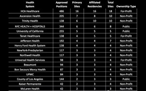 Health Systems Affiliated with 3+ New EM Residency Programs