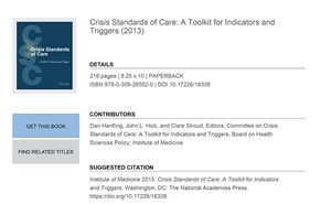 Crisis Standards of Care: A Toolkit for Indicators and Triggers
