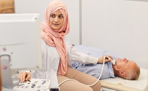 - Turn the indicator marker towards the patient’s right. Sweep the transducer with continued graded compression towards the patient’s LLQ.