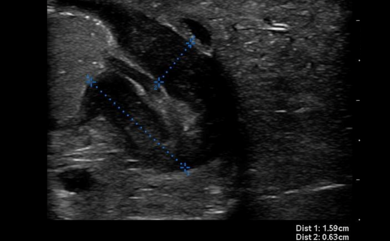 - Figure 7. Hypertrophied pyloric muscle in short axis measuring 5.5mm