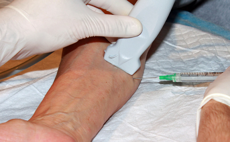 • Once the needle tip is adjacent to the target, inject 0.5cc of anesthetic.