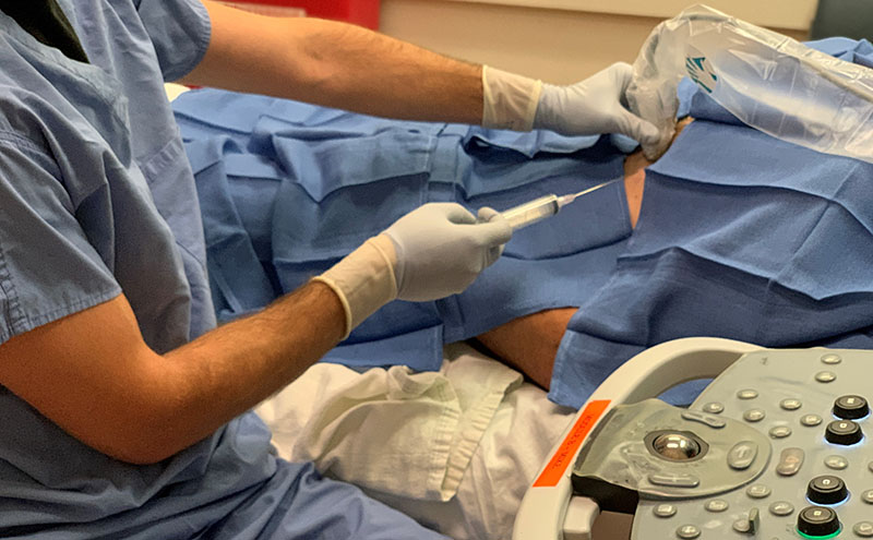 Commonly attempted ultrasound views for this procedure are the subxiphoid (SX) and parasternal long axis (PSLA) view. However, the optimal position of the probe depends on multiple factors including patient position and body habitus, and oftentimes good results can be achieved with an apical or apical/PSLA approach.