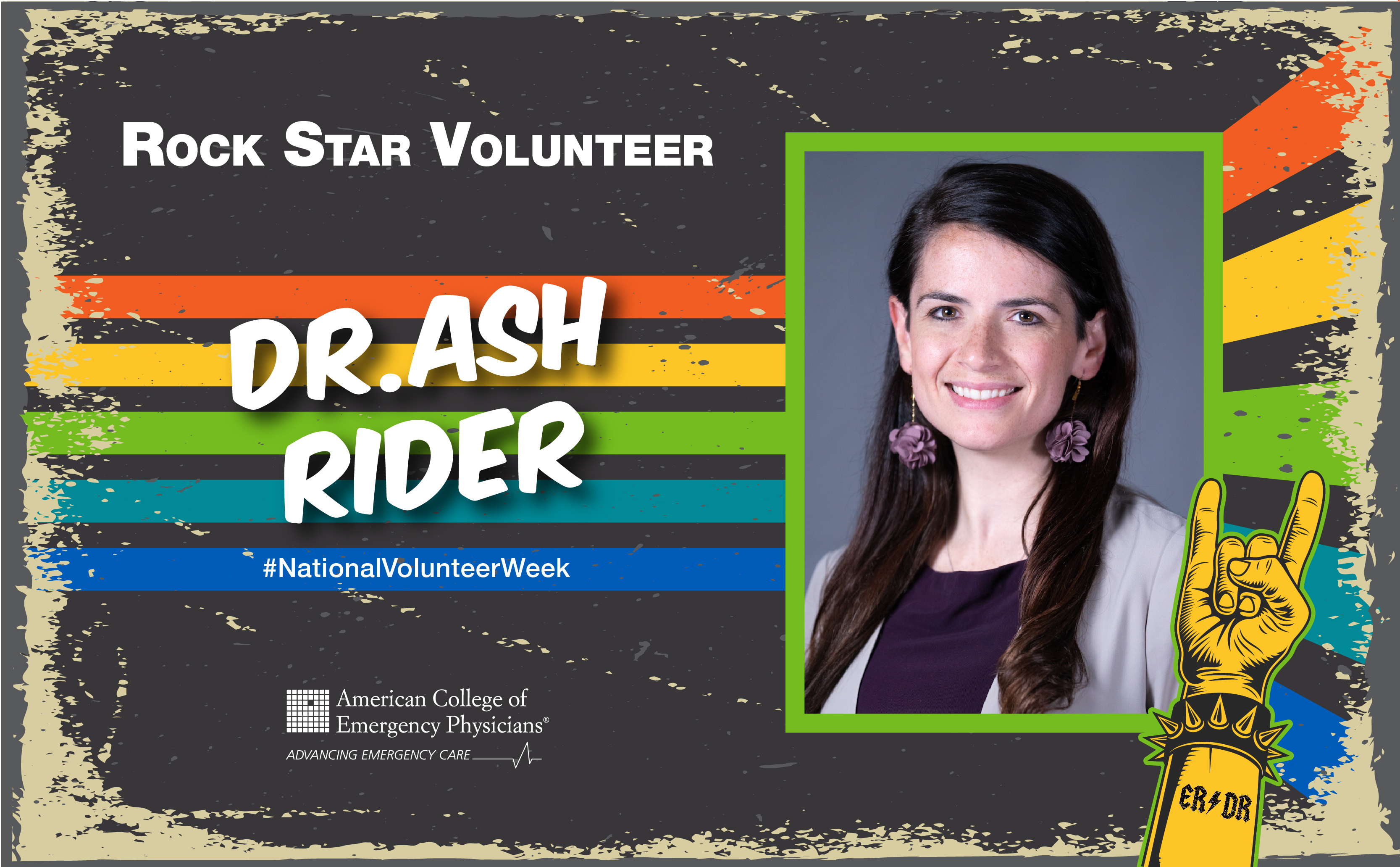 Dr. Ashley Rider has always been motivated by her steadfast commitment to servant leadership. She got involved with ACEP as a resident, and she credits her work on ACEP’s Academic Affairs Committee for accelerating her professional growth and expanding her view of the specialty.